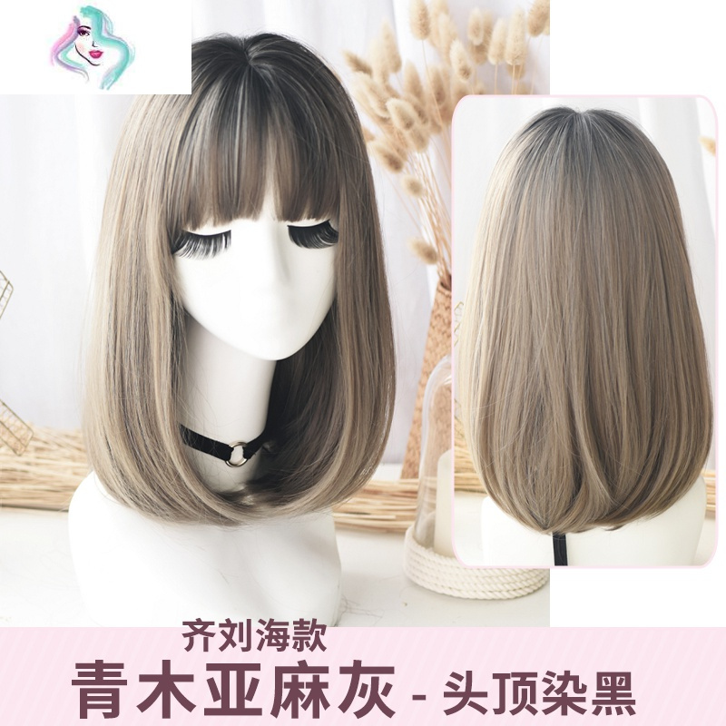你那么美假发假发女短发逼真自然蓬松中长发套头气质齐肩锁骨圆脸短卷梨花头a6 你那么美狗啃刘海青木亚麻灰40cm 价格图片品牌报价 苏宁易购苏享尚品美妆工具专营店